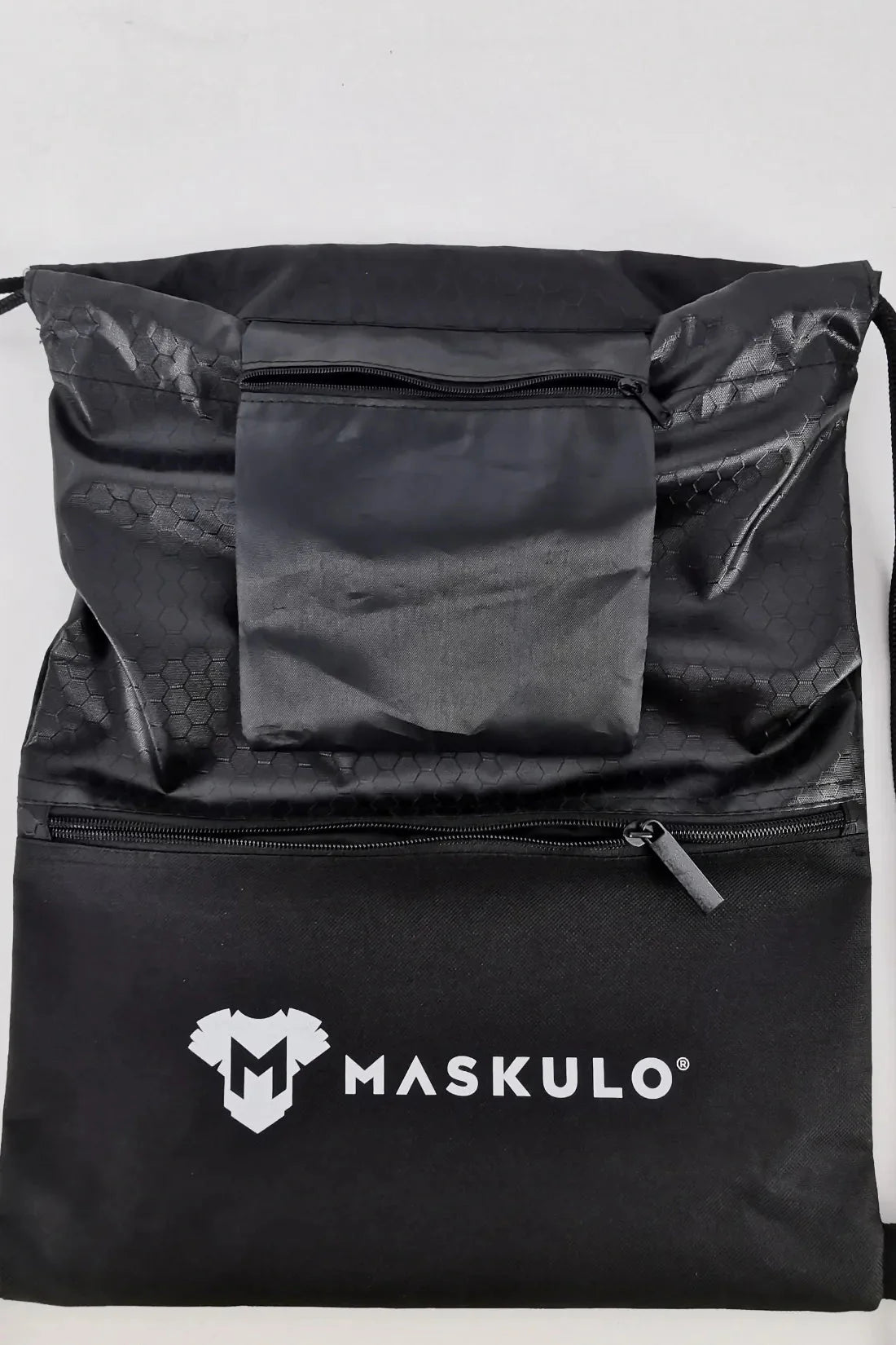 The Maskulo Black Backpack is crafted from 100% polyester, ensuring durability and premium quality. Measuring approximately 34x43 cm (13x16 in.), it is the essential bag for everything you might need on a walk or a party. The external zip-pocket is about 17 cm (6 in.) deep, perfect for quick access items. Comfortable drawstring cords, around 6 mm (1/5 in.) thick, provide ease of use. Inside, a zippered pocket measuring 15x17 cm (5.5x6.5 in.) can securely hold most smartphones, including popular models from iPhone, Google Pixel, and Samsung Galaxy.